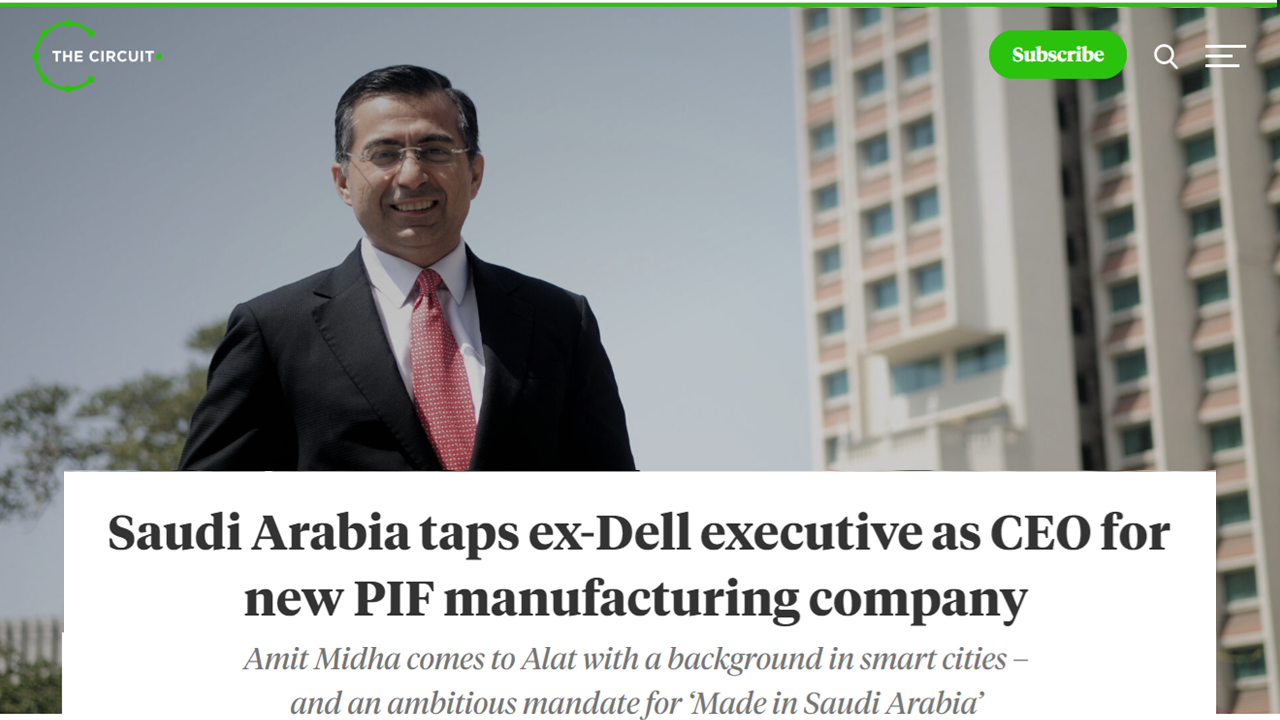 Saudi Arabia appoints ex-Dell Technologies executive to lead the new $100 billion electronics manufacturing group Alat, formed recently by Public Investment Fund (PIF).