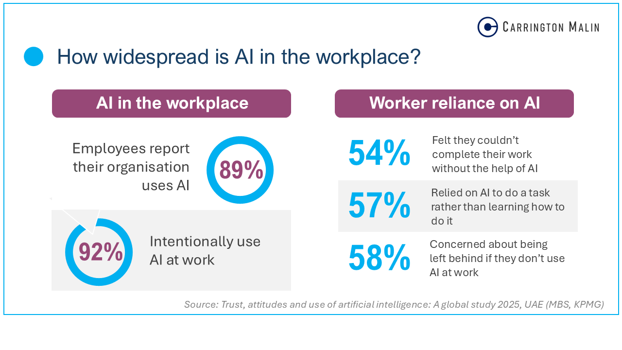This means that are growing numbers of people using conversational AI on a daily basis. The KPMG report found that 92% of office workers in the UAE intentionally use AI at work, while 54% felt that they couldn’t complete their work without using AI! This usage also takes place in the knowledge that there are risks that come from using AI. Of those surveyed, 75% were concerned about negative outcomes from AI and 64% admitted that they made mistakes in their work as a result of using AI.